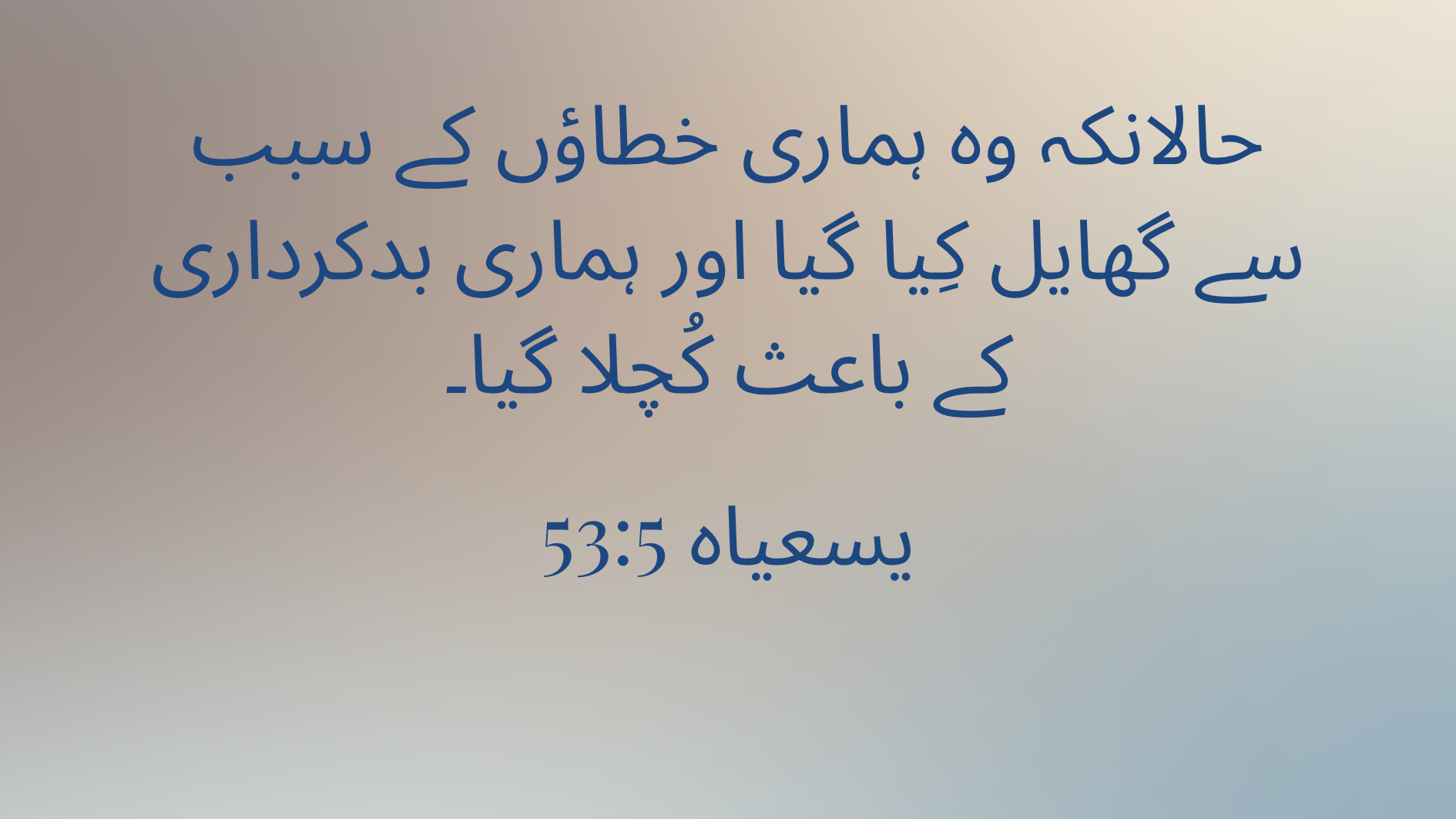 "حالانکہ وہ ہماری خطاؤں کے سبب سے گھایل کِیا گیا اور ہماری بدکرداری کے باعث کُچلا گیا۔" (یسعیاہ 53:5)